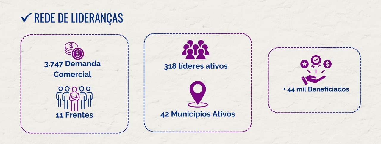 Na linha do tempo, em parceria com grandes empresas, compartilhamos grandes resultados: Desenvolvemos projetos como Rede de Lideranças Comunitárias, que consiste em uma estratégia de consolidação de parcerias, construindo uma relação de maior proximidade entre a empresa e as comunidades, estimulando o desenvolvimento comunitário a partir de ações integradas que valorizam o potencial de cada comunidade e o compartilhar de soluções dos problemas comuns. O programa se dá através de encontros qualificados, de forma a estabelecer uma relação de co-responsabilidade. Abaixo os resultados: