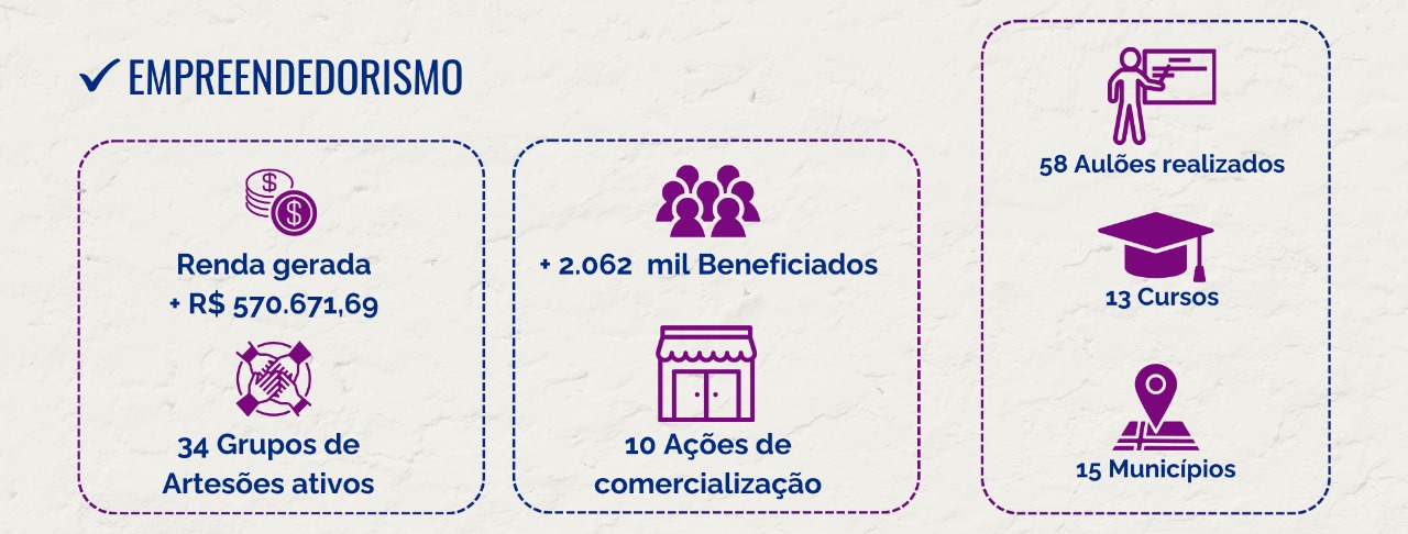 Já o Projeto Compartilha Empreendedorismo visa capacitar indivíduos e comunidades no Estado do Ceará, para se tornarem agentes ativos na criação e desenvolvimento de negócios. Por meio de encontros, palestras e recursos educacionais, buscamos estimular o espírito empreendedor e fornecer as ferramentas possíveis para transformar ideias inovadoras em empreendimentos de sucesso, promovendo o crescimento econômico e o empoderamento local. A seguir resultados desse Projeto:
