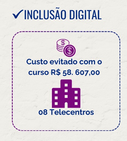 Também colocamos em prática o Projeto Inclusão Digital, que tem como objetivo capacitar pessoas de todas as idades e origens a se tornarem proficientes no uso da tecnologia, permitindo-lhes participar plenamente da sociedade digital em constante evolução. Através de aulas de informática, acesso à internet, treinamento em habilidades digitais e suporte técnico, buscamos reduzir a exclusão digital e capacitar os indivíduos a aproveitarem os inúmeros benefícios oferecidos pela era digital. A seguir resultados do Projeto: