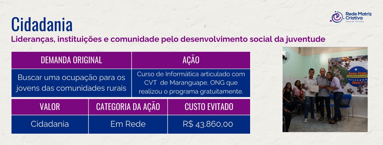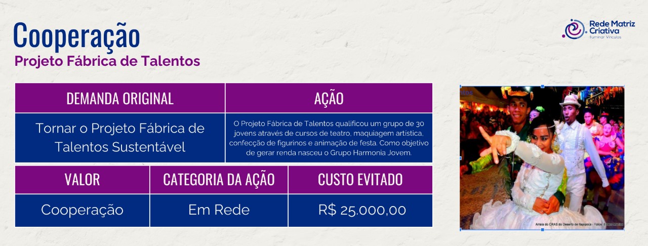 - Geração de Renda para jovens do grupo;
