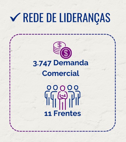 Na linha do tempo, em parceria com grandes empresas, compartilhamos grandes resultados: Desenvolvemos projetos como Rede de Lideranças Comunitárias, que consiste em uma estratégia de consolidação de parcerias, construindo uma relação de maior proximidade entre a empresa e as comunidades, estimulando o desenvolvimento comunitário a partir de ações integradas que valorizam o potencial de cada comunidade e o compartilhar de soluções dos problemas comuns. O programa se dá através de encontros qualificados, de forma a estabelecer uma relação de co-responsabilidade. Abaixo os resultados: