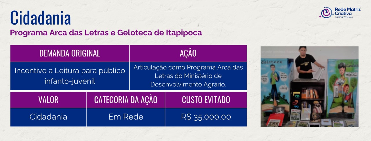 - 07 oficinas de Formação Agente de Leitura que ficará responsável pela Arca;