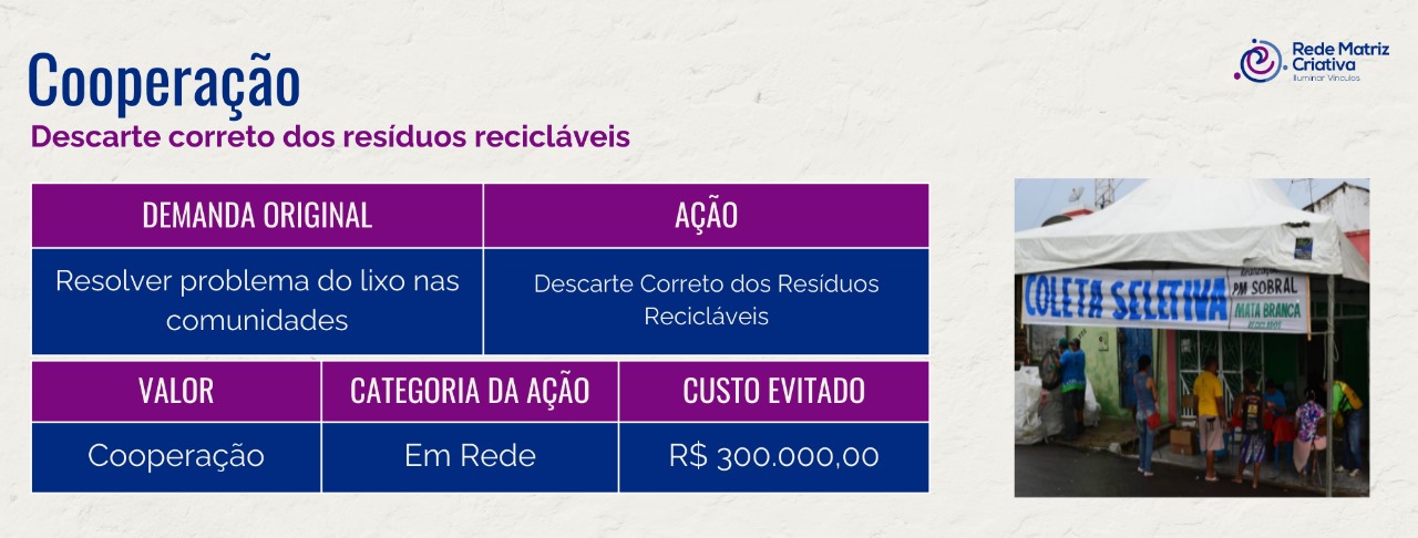 - Famílias pagando sua conta de energia com bônus do resíduo reciclável;